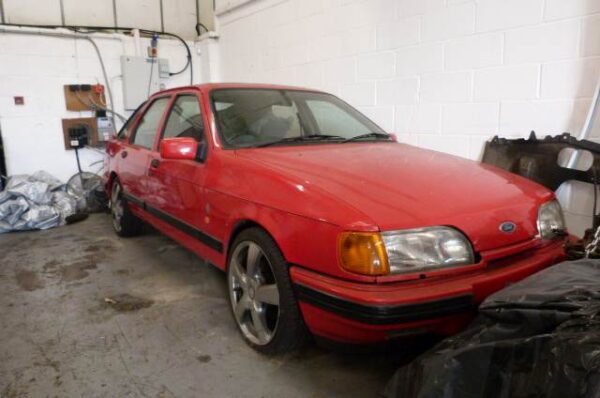 This 1990 Ford Sierra XR4x4 2.9 petrol manual is a popular choice amongst Ford enthusiasts for the 80’s and 90’s. This particular car finished in red with light grey/blue interior has the potential as a project to get back on the road relatively quickly. It runs and drives but does need manifold gaskets. It has had some basic servicing done along with new water pump. The ignition does need sorting out because it doesn’t switch off when the car is running and is causing a drain on the battery we believe.