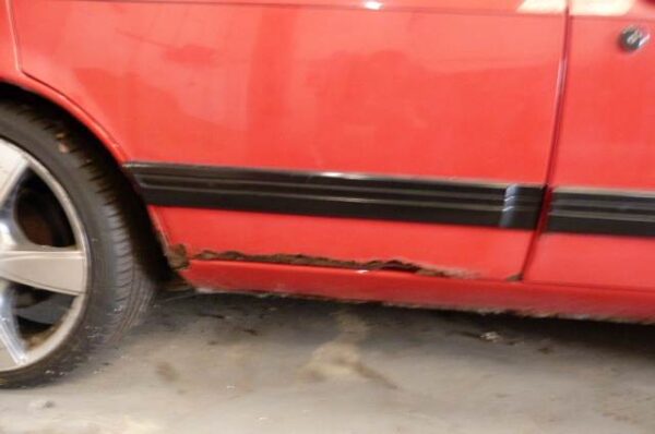 Cosmetically it does have a few marks around it but more importantly the bottoms of the doors need repairing and reworking. There is fabrication required on the sills and where the floor pans meet the sills and jacking points need to rebuilding.